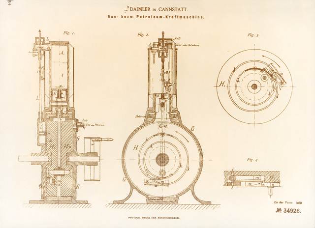 «Повозка для верховой езды с керосиновым двигателем» – такое наименование получила новая машина немецкого инженера. Первый мотоцикл представлял собой велосипед на деревянной раме, оснащенный одноцилиндровым бензиновым двигателем и ременной передачей, его мощность составляла половину одной лошадиной силы.